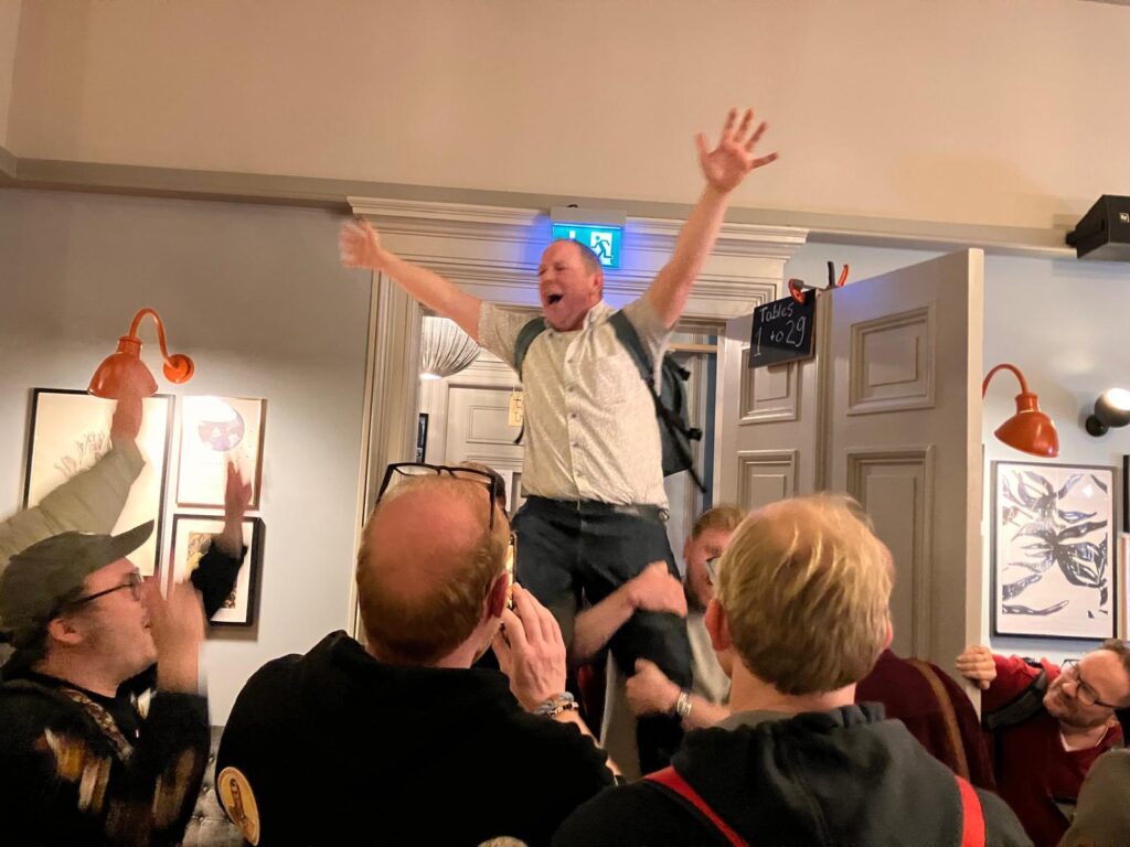 I feel pretty good still; not drinking during the day has helped with surviving the evening. But then there is Rasmus, my Danish brother. He apologizes that Martin has already gone to bed after waking up at 03:00 to travel to Leeuwarden, but he’s ready for some shouting MTG. For those who don’t know what it is, trust me, you don’t need to know. But for those who were in the Troll Cave last year or this year, they’ll know. Unfortunately, the other Rasmus didn’t come this year, and Jurriaan was also already in bed. We order Duvel at the bar, sit down, and play with an unsleeved, 200-card, mono-white deck which we cut up into two pieces. Rob gets attracted by the noise, he accepts the invite and buys some more Duvel, and we split the deck in three. It all makes even more sense after Frank joins the game… Crazy banter, stupid games, nice Duvels. What’s not to like? I made another smart decision and skipped town, time to prepare for the main event.