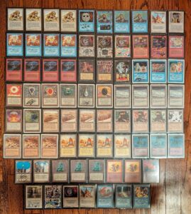 I was not completely happy with the orders. They were great late game and could be treat of their own, but in the early game they were more of a liability due to the manabase. Furthermore, the chance that they would be bigger than 3/1 with this manabase was quite slim. Mana drain was sometime great (especially With FB/ braingeyser/ disks in hand), but the manaburn (countering a MT of 7) costed me a game as well. Vises were just stupid. It just could win the game out of nowhere, especially with draw7s. Due to the amount of mana sources in each deck it could be hard to go back to 4 cards after a draw 7. So, I upped the vises to 4. I Removed the orders and upped the atogs to 3. I do not like drawing too many atogs without artifacts – as without them they are just 1-2s. So, I only played 3. Dibs were a fantastic treat. But, due to the pinging and CiaB, they could be a liability. Just to have the opportunity to choose between CiaB and dibs I opted to play 2. As I only had 1 city and a LoA besides my dibs meant that a CiaB against me would not be a major concern.